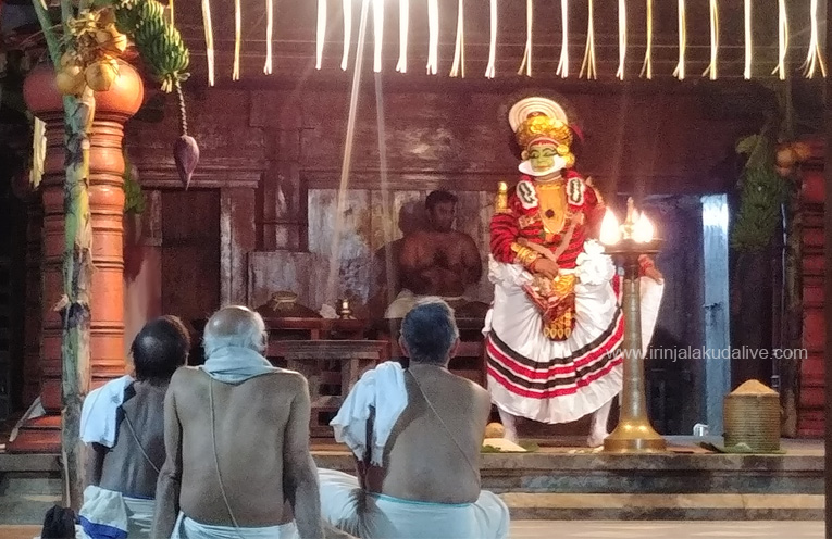 കൊടിയേറ്റത്തിന് ശേഷം ആദ്യമായി ചെയ്യുന്നത് ചാക്യാർകൂത്താണ്. പിന്നിട് നിത്യവും സന്ധ്യാ വെടിക്ക് ശേഷം കൂത്തമ്പലത്തിൽ ചാക്യാർകൂത്തും നങ്ങ്യാര്കൂത്തും അവതരിപ്പിക്കും. ആറാട്ട് ദിവസം ദേവൻ പുറത്തേക്കു എഴുന്നുള്ളിച്ചു പോകുന്നതിനു മുൻപ് രാവിലെയാണ് ഉണ്ടാവുക. കൂത്തിന്റെ നടത്തിപ്പ് പാരമ്പര്യ അവകാശിയായിട്ടുള്ള അമ്മന്നൂർ കുട്ടൻ ചാക്യാരും അമ്മന്നൂർ കുടുംബാംഗങ്ങളുമാണ് നടത്തുക. ബാലചരിതം കൂടിയാട്ടത്തിലെ സൂത്രധാരന്റെ ഭാഗമാണ് ഇവിടെ പതിവായി അവതരിപ്പിക്കുന്നത്. നങ്ങ്യാര്കൂത്ത് ചെയ്യുന്നത് പാരമ്പര്യ അവകാശിയായിട്ടുള്ള വിലുവട്ടത്ത് കുടുംബാംഗങ്ങളായ നങ്ങ്യാരമ്മമാരാണ് . ശ്രീകൃഷ്ണചരിതം നങ്ങ്യാര് കൂത്തിലെ കഥയാണ് അവതരിപ്പിക്കുന്നത്.